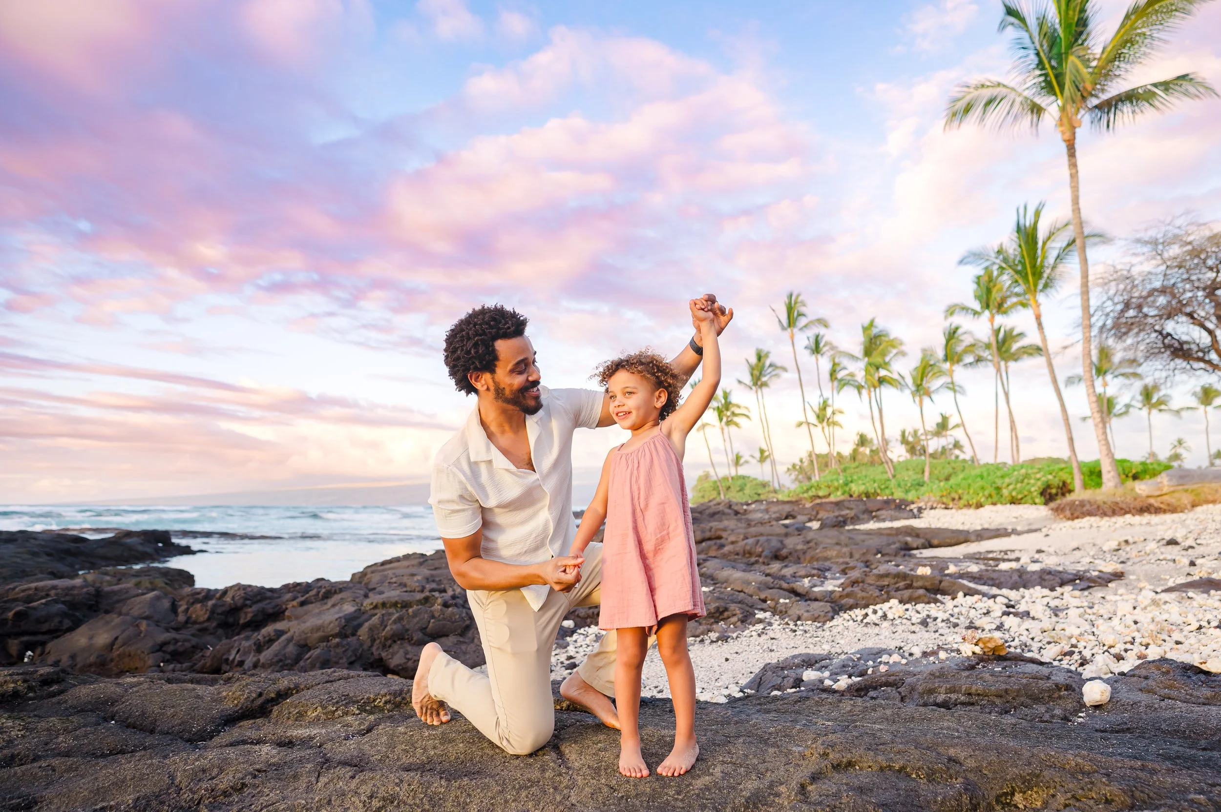 Our sessions are all about connection, color, and joy. As Big Island family photographers, we know the most accessible beaches and scenic backdrops for every kind of group. We guide you every step of the way with wardrobe styling, our client closet, and a session flow that feels like a family beach day—not a photo shoot. Expect giggles, hugs, and moments that feel totally you.